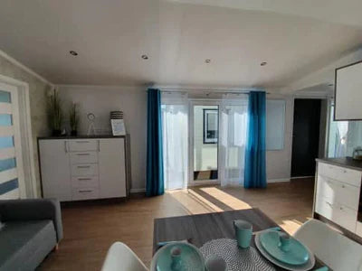 SALÓN CON SOFÁ CAMA, DORMITORIO PEQUEÑO CON DOS CAMAS, DORMITORIO DOBLE, CUARTO DE BAÑO CON INODORO, LAVABO Y DUCHA.