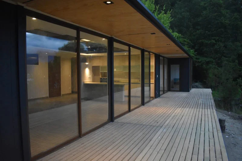 Casa modular elegante, discreta y de carácter extensivo. Amplia vivienda que se desarrolla mayoritariamente en planta baja. Ideal para terrenos amplios y con vistas muy marcadas en una dirección, a la que todos los recintos vuelcan y miran.